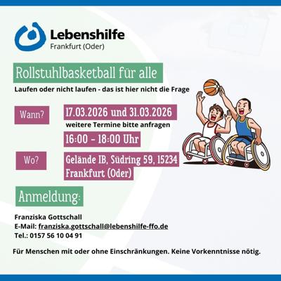 Für Menschen mit und ohne Einschränkungen – Vorkenntnisse sind nicht erforderlich! Kommt vorbei und probiert etwas Neues aus. Mehr: Rollstuhlbasketball für alle